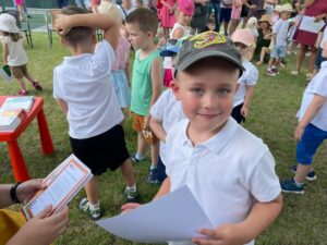 30 czerwca odbyło się pierwsze Uroczyste Zakończenie Roku w naszym Przedszkolu. Była to wspaniała okazja do wspólnych zabaw na świeżym powietrzu. Dzieci przygotowały krótki koncert dla zaproszonych rodziców. Po występie nastąpiło wręczenie dyplomów i upominków. Na dzieci czekały lody, foto butka, malowanie twarzy, zabawy plastyczne oraz ogromna zjeżdżalnia.