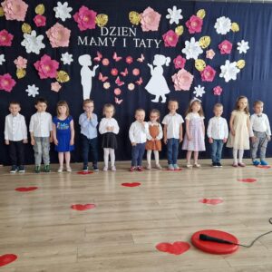 W ostatnie dni maja najważniejszym słowem w przedszkolu była „Rodzina”. Dzieci uczyły się wierszyków, piosenek i układów tanecznych na specjalną okazję – Dzień Mamy i Taty. Każdy przedszkolak starannie wybrał eleganckie ubrania i przygotowywał się do tego wyjątkowego dnia. Najważniejszy dzień w życiu wszystkich rodziców dobył się bardzo radośnie. Dzieci z uśmiechem wystąpiły, a na koniec zaniosły rodzicom podarki własnoręcznie wykonane podarunki.